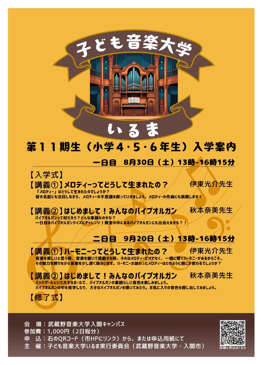 主催 子ども音楽大学いるま実行委員会(入間市教育委員会社会教育課)